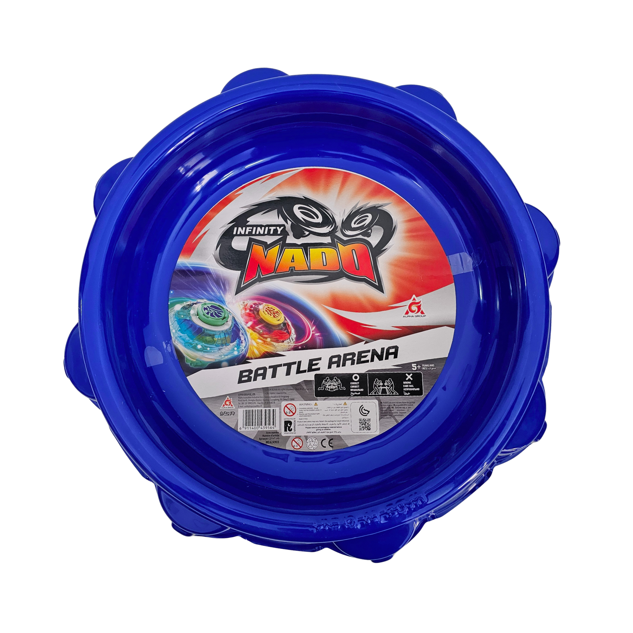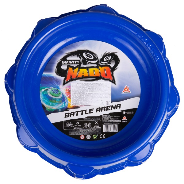 Арена для баттлов Infinity Nado сделана из качественного ударопрочного пластика, безопасного для здоровья детей. Благодаря большому диаметру, на арене можно проводить баттлы четырех и более волчков. Высокие борта арены обеспечивают безопасность ребенка во время запуска волчка. Размер арены – 42х42х8,5 см.